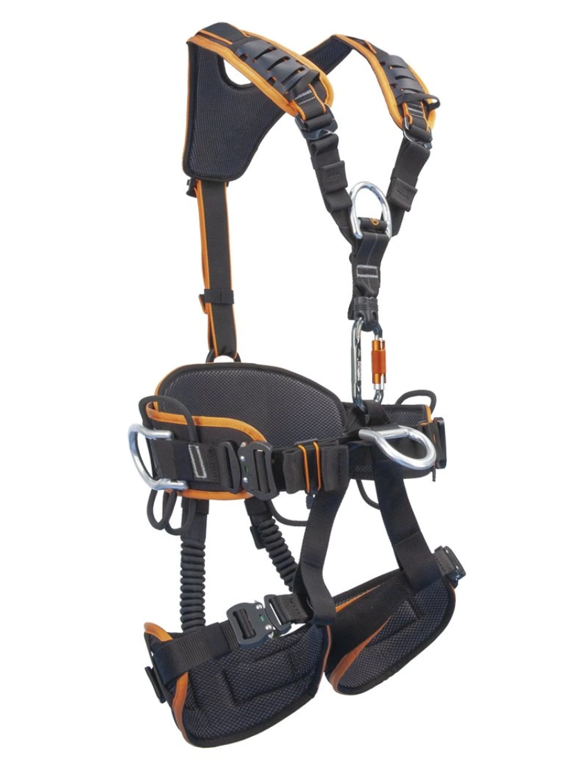 MASTER AL Lock es un arnés de cuerpo completo de última generación con un revolucionario sistema de ajuste de cintura . El cinturón consta de tres piezas, lo que permite adquirir una talla estándar y personalizarla según las necesidades. El usuario puede ajustar los puntos de posicionamiento AL según sus necesidades. El arnés también es cómodo gracias al cinturón acolchado reforzado y a las correas para las piernas. El sistema de ranuras variables (en combinación con un cordón para accesorios) en la parte posterior del cinturón proporciona una gran versatilidad. Para guardar objetos pequeños (como un cuchillo, etc.), puede utilizar las pequeñas ranuras ubicadas en las correas de los hombros.