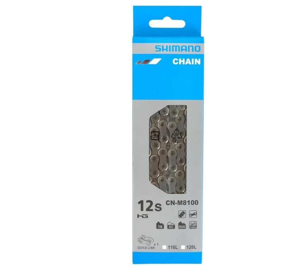 La cadena M8100 mejora la retención de la cadena gracias a una parte extendida de la placa interior. La nueva cadena esta equipada con montaje rápido de eslabones y tratamiento SIL-TEC para una mayor durabilidad en montaña.