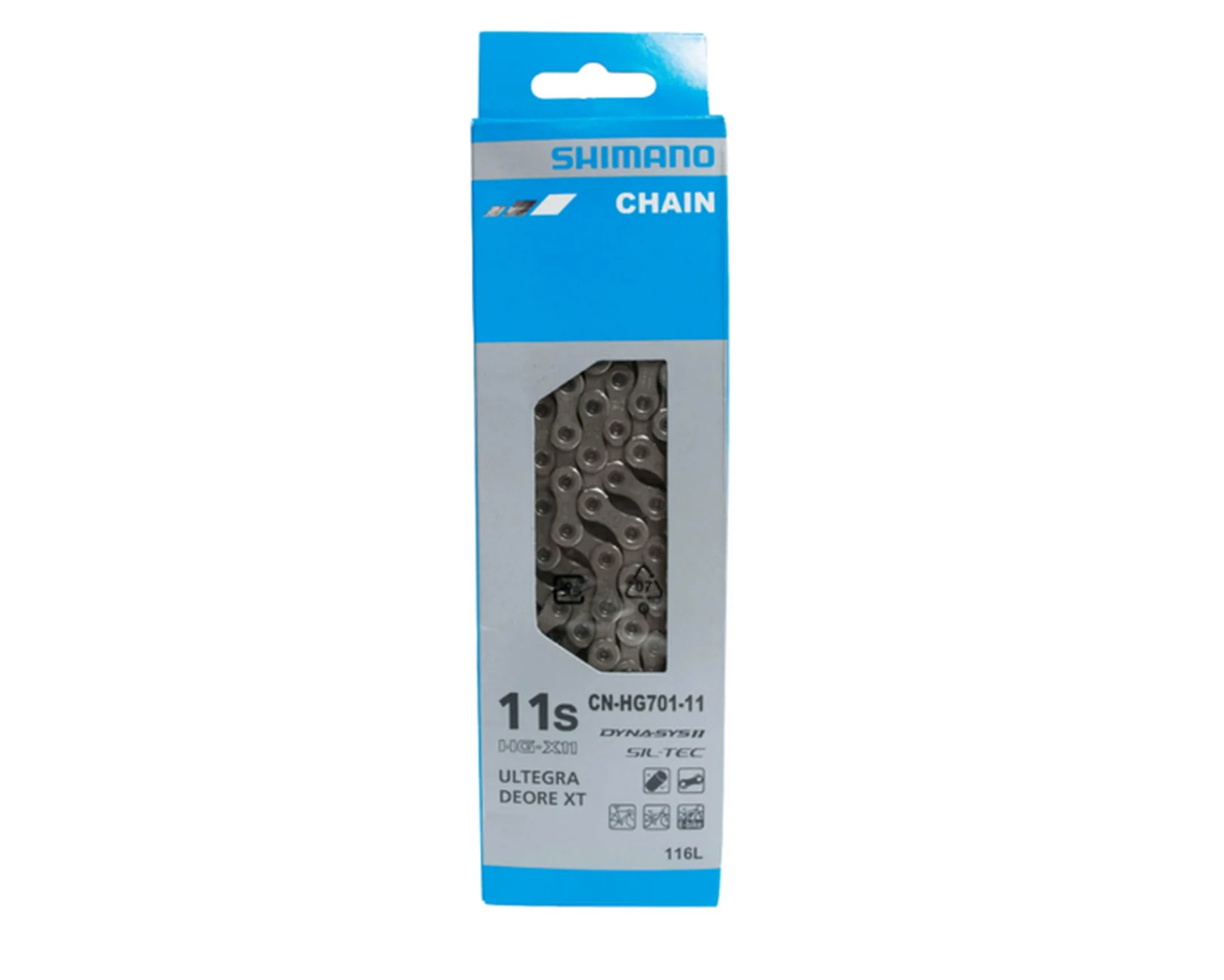 La cadena HG701-11 es direccional y lleva un tratamiento SIL-TEC en las placas de eslabón de rodillo y las placas de eslabón de pasador para aumentar su durabilidad. Es compatible con bicicletas de carretera, bicicletas de montaña y bicicletas eléctricas de 11 velocidades gracias a su diseño reforzado.
