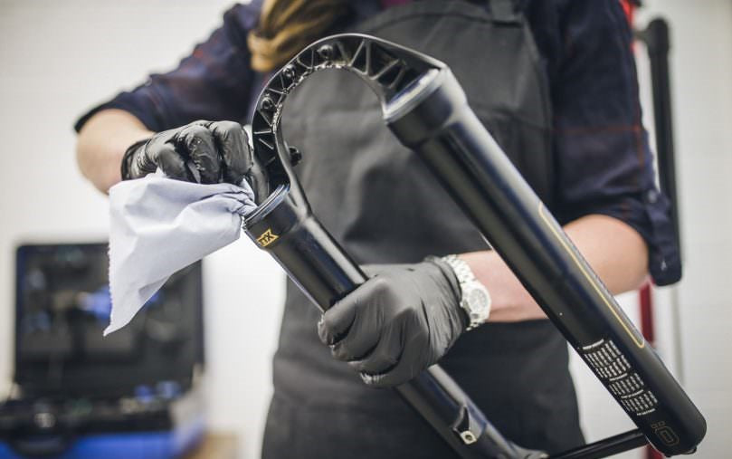 - Se carga el nivel correcto de aceite a cada lado de la horquilla.