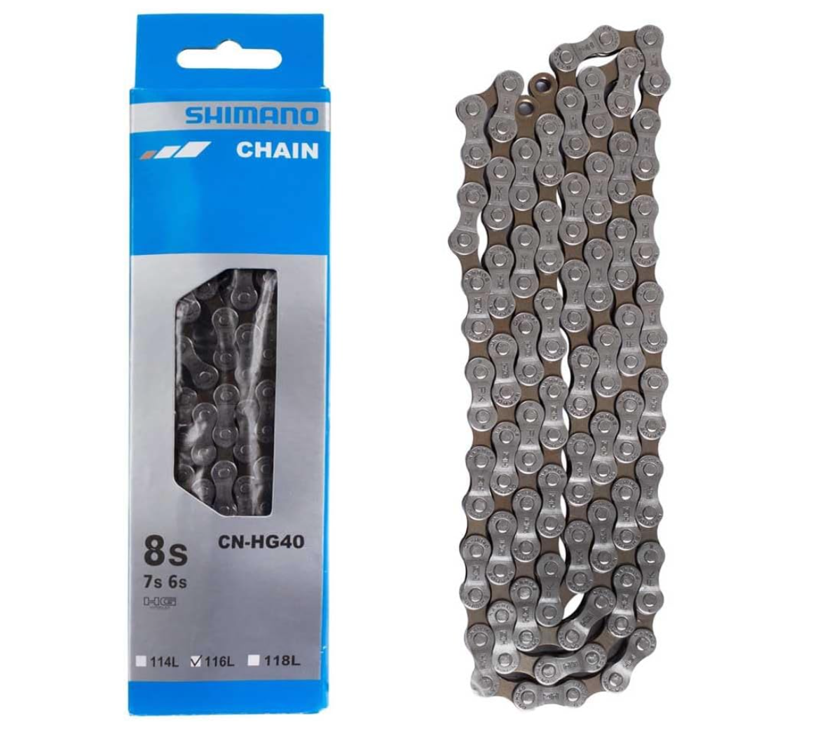 Cadena Shimano HG40 para Ruta y MTB. SHIMANO TOURNEY TY - 6, 7, 8 velocidades - Cadena HYPERGLIDE. La cadena HG-40 está diseñada para los cambios precisos indexados de las transmisiones de 6, 7 y 8 velocidades HYPERDRIVE SIS y DUAL SIS